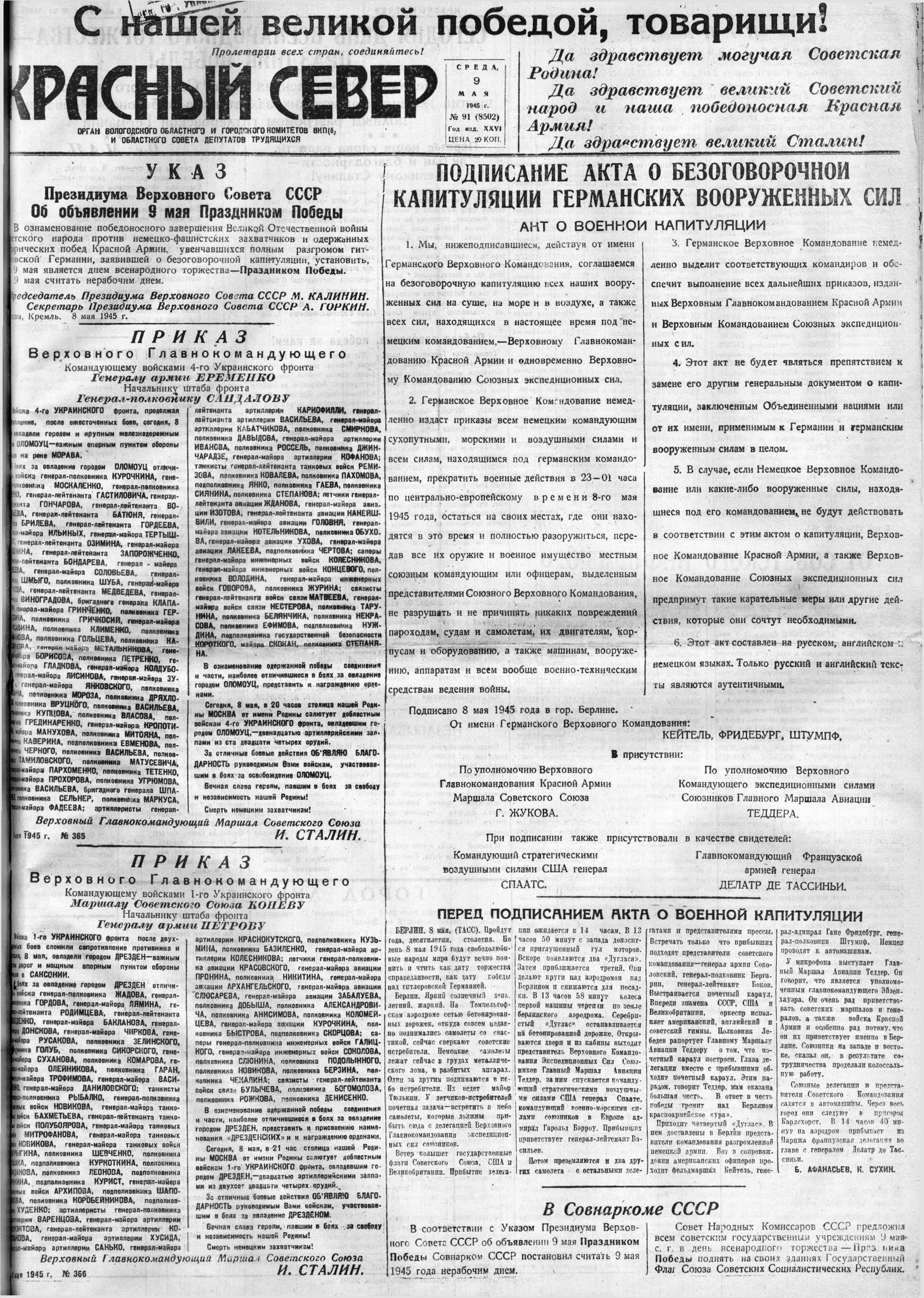 В час меня вызвал Поспелов. В 2 часа стало известно, что радио будет работать до трех с половиной. А в 2 ч. 10 минут ночи начали передавать акт о капитуляции. Когда-то на вопрос: когда кончится война, отвечали- Левитан скажет. Так и было- читал Левитан.