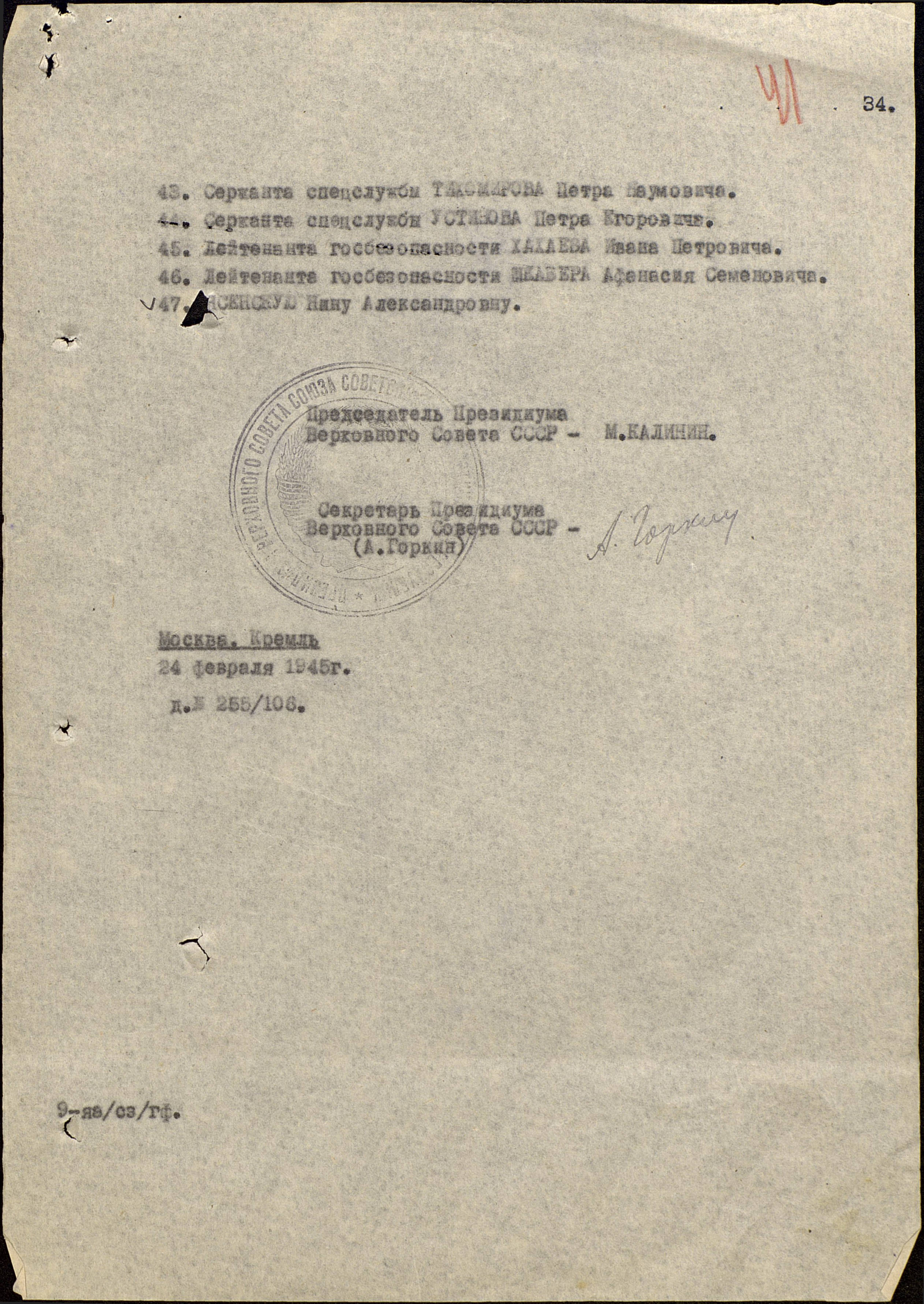 Приказ подразделения №: 14/н от: 04.05.1945 4 гв. бак