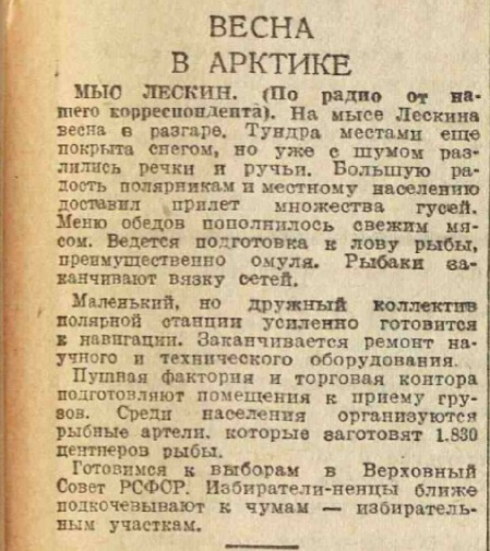 пишет:Лескино — полярная станция и самый северный населенный пункт на Гыданском п-ове на побережье пролива Овцына Карского моря. Находится на мысу Лескина, относится к Таймырскому району Красноярского края. В 35 км от Лескино проходит административная граница с Ямало-Ненецким автономным округом.