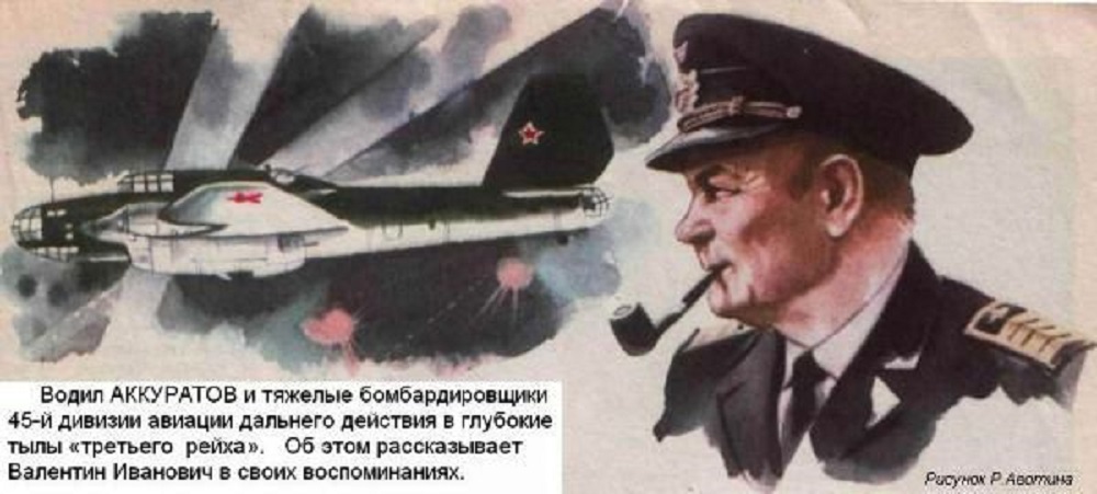 Валентин Аккуратов - советский полярный навигатор, заслуженный штурман СССР. В полярной авиации с 1935. Работал штурманом в арктических экспедициях. Участник высадки экспедиции И.Д. Папанина на Северный полюс. Участник советско-финской и Великой Отечественной войн. Летал в Арктике, в осажденный Ленинград. Перегонял ленд-лизовские «Каталины» по южному маршруту, через Африку. В 1947-1971 был главным штурманом полярной авиации. Налетал 28 тысяч часов. 1950-е