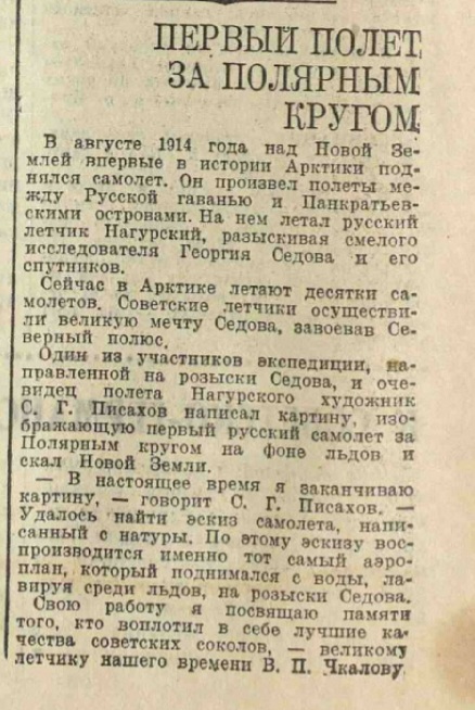 Первый полет за полярным кругом//Вечерняя Москва, 22 августа, 1939, № 192 (4721)