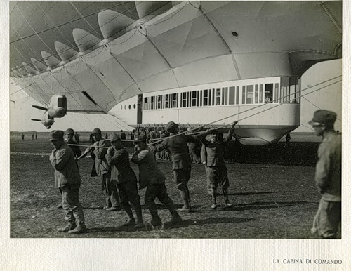 Это фото дирижабля, сделанное уже в конце перелета. Единственное место, где можно подозревать "цвета итальянского флага" - над самой задней группой газовых клапанов, на верхней части корпуса, у рулей. На самих рулях ничего не накрашено.