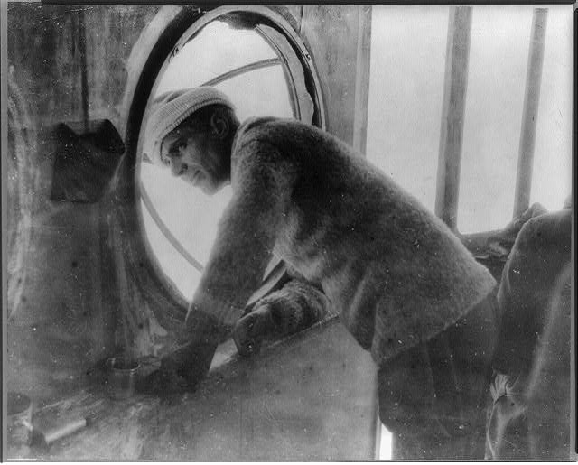 И еще одно фото, сделанное в ходе трансарктического перелета. Умберто Нобиле ведет наблюдения за льдами: