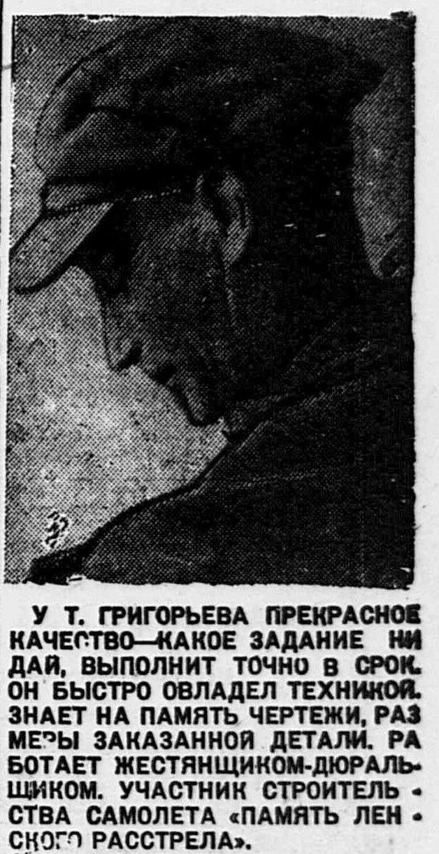 Но не знали того, что Григорьев бывший жестянщик, умевший делать лишь чайники и котелки, стал теперь высококвалифицированным мастером дюральщиком, одним ив лучших специалистов - практиков Союза.