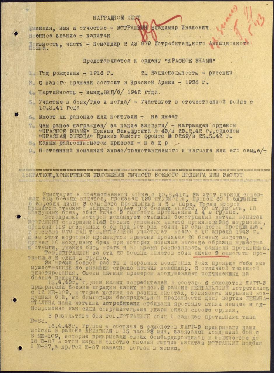 Заметка о капитане В.И.Истрашкине в газете "Красная звезда" от 16 июля 1944 г., №168 (видимо, ошибочно указан как гвардии капитан, т.к. 979-го иап гвардейским не был).