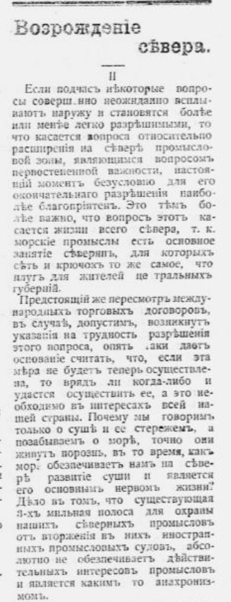 Многочисленные исторические документы с несомненностью подтверждают значительное развитие северного зверобойного промысла, имевшего первобытный грубо кустарный характер и представлявшего яркий пример экстенсивной эксплоатации, характерной для капиталистической системы.