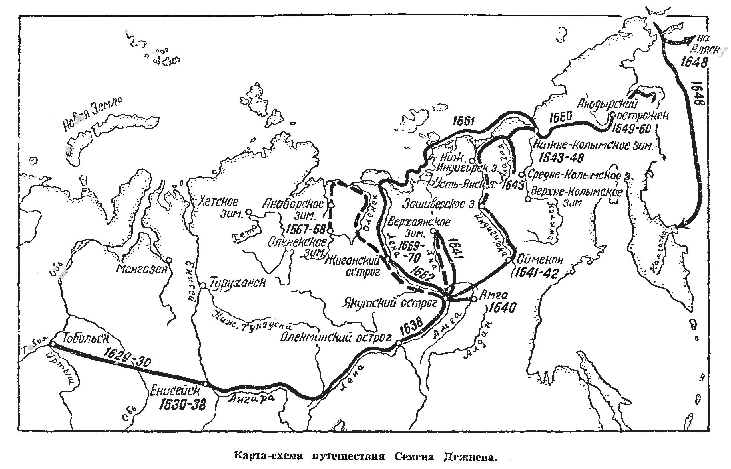 Карта-схема путешествий Семена Дежнева : Dezhnev_NIZH-3-1949.gif