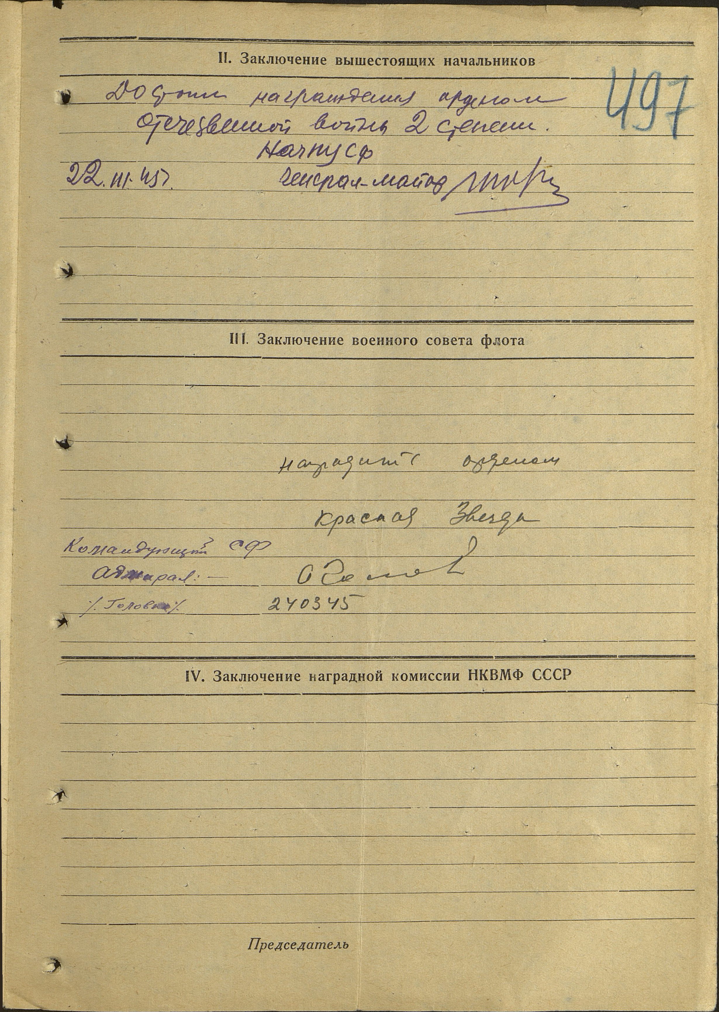 Наградной лист: фонд 3 опись 1 единица хранения 1482