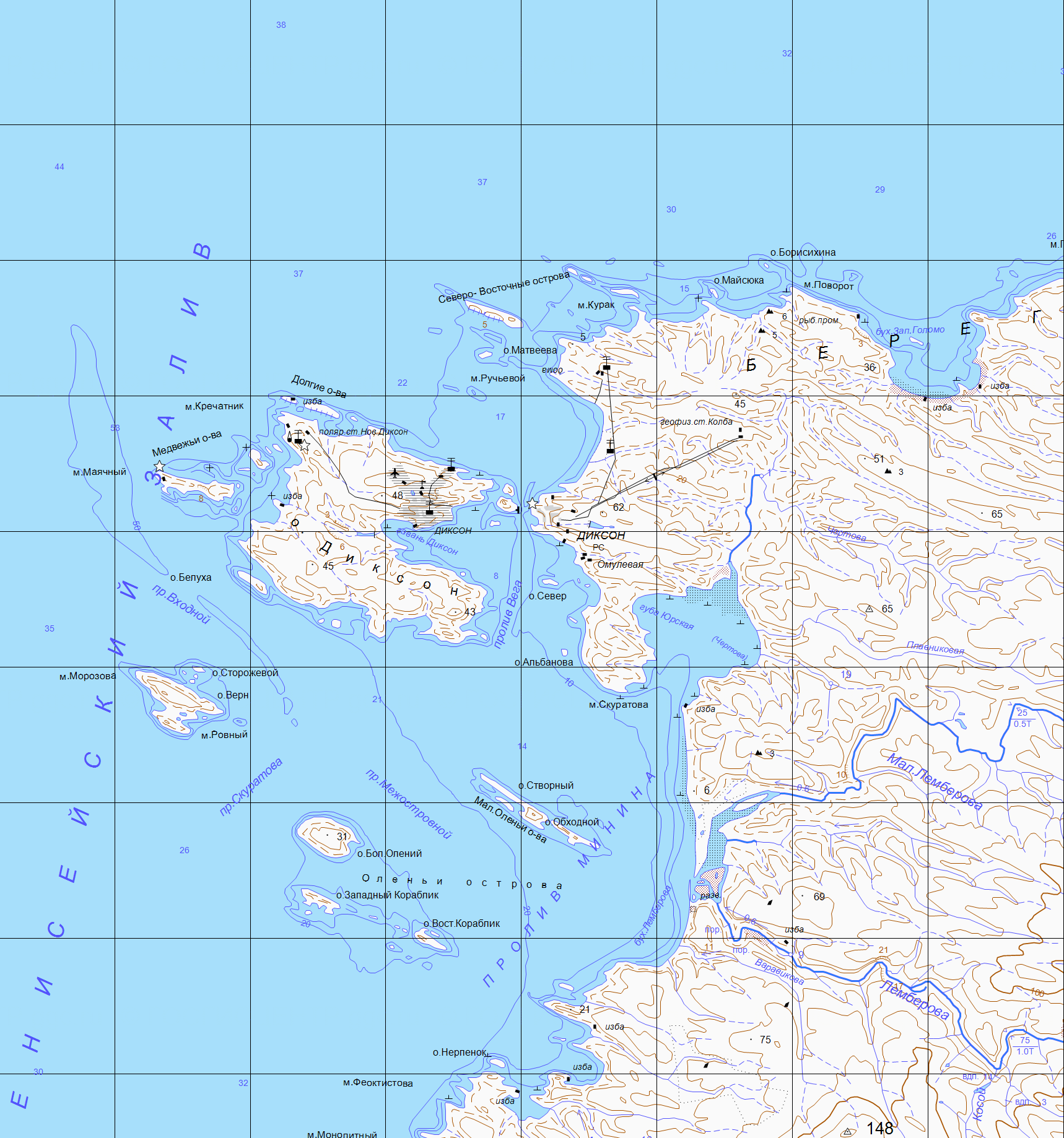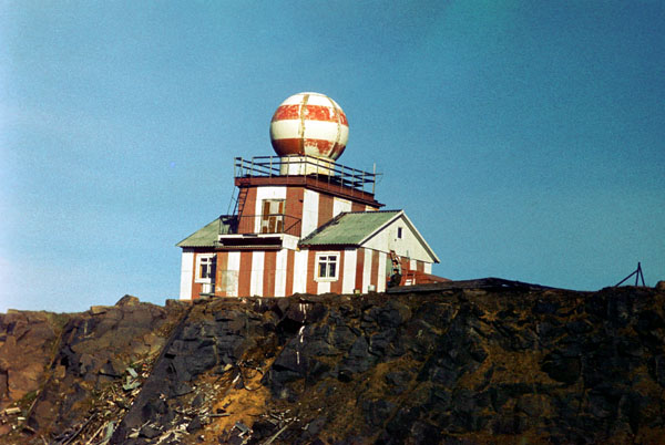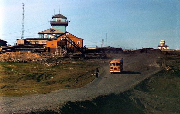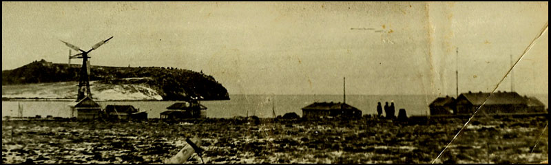 Наконец 17 августа, около 5 час. дня, на горизонте показался остров Диксон. Очень скоро мы увидели громадную мачту беспроволочного телеграфа,а в 7 час.вечера начали входить в пролив между островом и берегом. Около 8 час. стали на якорь. Здесь находились пароход „Туруханск" и три лихтера. Еще мы не успели стать на якорь, как подошел мотор, в котором были доктор Кушаков, лейтенант Транзе, еще кто-то и матрос. Сначала они вышли на „Таймыр", а потом приехали к нам.
