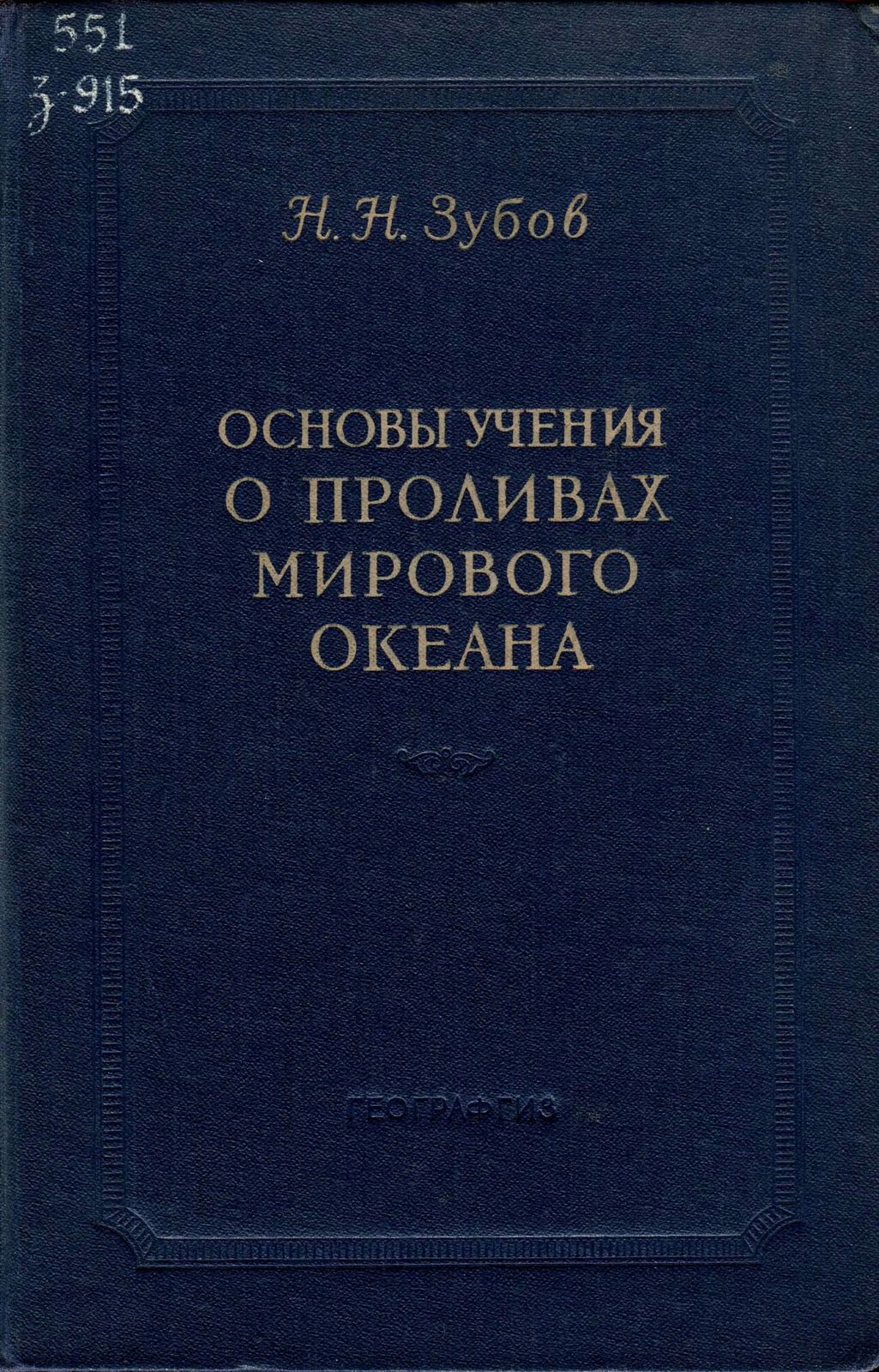Он продолжает читать курс лекций в университете, писать статьи и книги. В 1956 году вышла в свет следующая большая работа Зубова — «Основы учения о проливах Мирового океана». Родилась она из курса лекций о проливах, который Зубов читал студентам МГУ. Конспект лекций был опубликован в томе «Избранных трудов по океанологии» Н. Н. Зубова, изданных в 1955 году, к семидесятилетию со дня рождения автора. В книге-монографии Зубов развил идеи конспекта в настоящее учение о проливах. Эта книга была посвящена С. О. Макарову, которого Зубов считал основоположником учения о проливах.
