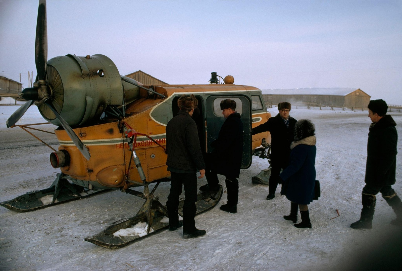 1974. Ханты-Мансийск. Аэросани для перевозки пассажиров по замерзшему Иртышу. Автор: Дин Когнер