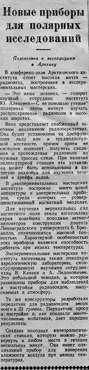 — Это наша новинка, — говорит научный сотрудник института Ю. Алексеев.—С ее помощью ученые полярники летом начнут изучать распространение радиоволн в высоких широтах.