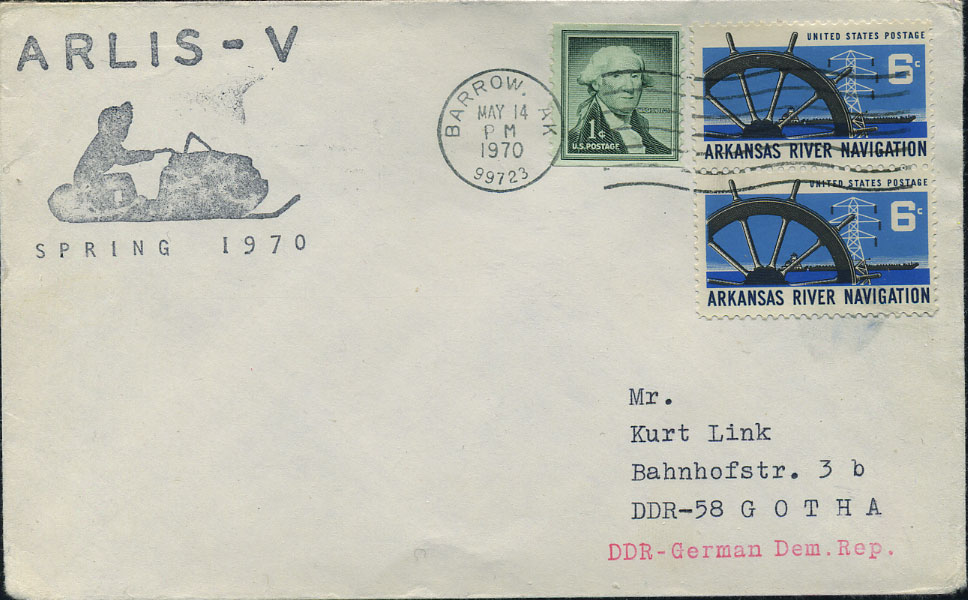 Станция «Арлис-5» начала работу 19 марта 1970 г. в точке с координатами 72°54' сев. шир. и 162° зап. долг. Эвакуирована она в конце мая: последняя корреспонденция, отправленная со станции, погашена календарным штемпелем в Барроу 2 июня. Исследования на станции «Арлис-6» начались 27 марта 1970 г. Координаты — 73°44' сев. шир. и 157°45' зап. долг. Через 64 дня станция прекратила существование. В последний день — 29 мая 1970 г. — ее координаты были следующие: 75° сев. шир. и 170° зап. долг. Последняя почта, обрабатывавшаяся также в Барроу, имела дату 1 июня 1970 г.