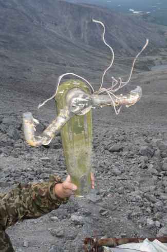 Самолет летел с юго-востока, врезался в вершину хребта, на которой осталась левая плоскость и сплющенный двигатель, а затем рассыпался по всему горному цирку.