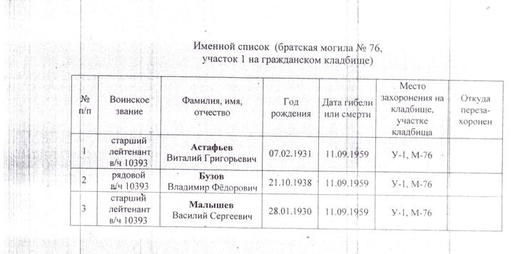 Скорее всего поисковая группа через год обнаружила (или не обнаружила) обломки, тела никто искать не стал, видимо решили , что после взрыва ничего не уцелело, похоронили пустые гробы и отчитались. В прошлом году через администрацию г.Мончегорска вроде договорились похоронить останки на их место...