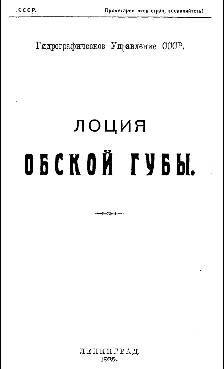 Настоящая лоция Обской губы составлена гидрографом Н . Ф . Тимофеевским , начальником Управления п о обеспечению безопасности кораблевождения в Карском море и устьях Сибирских рек (Убекосибири) , п о работам этого Управления за период с 1920 п о 1924 г . и проредактирована гидрографом-геодезистом П.Б.Мессер.