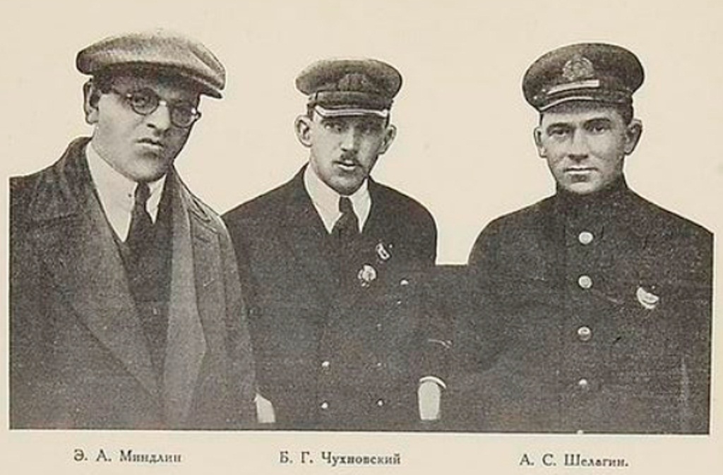 Кроме Бабушкина, на самолете находится механик Грошков и радио-телеграфист Фоминых.