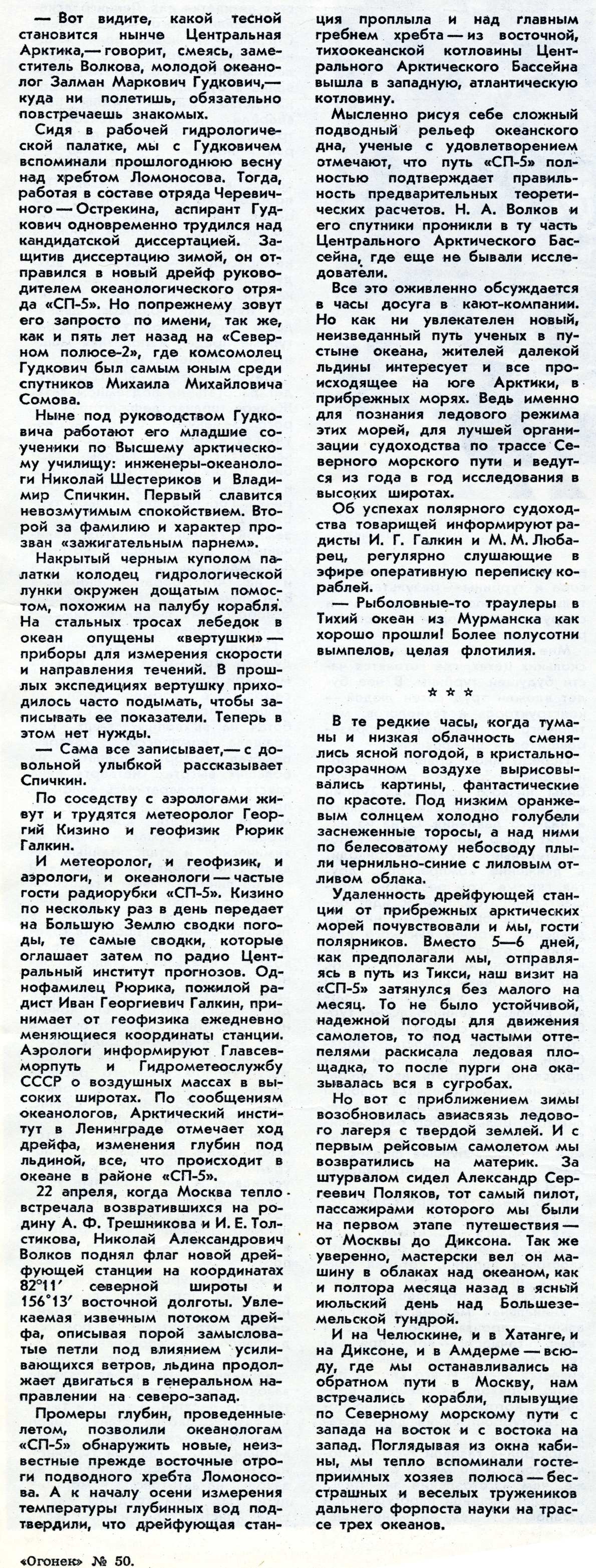 Статья в "Огоньке" корреспондента Саввы Тимофеевича Морозова (внука того самого Саввы Морозова) о работе станции СП 5.