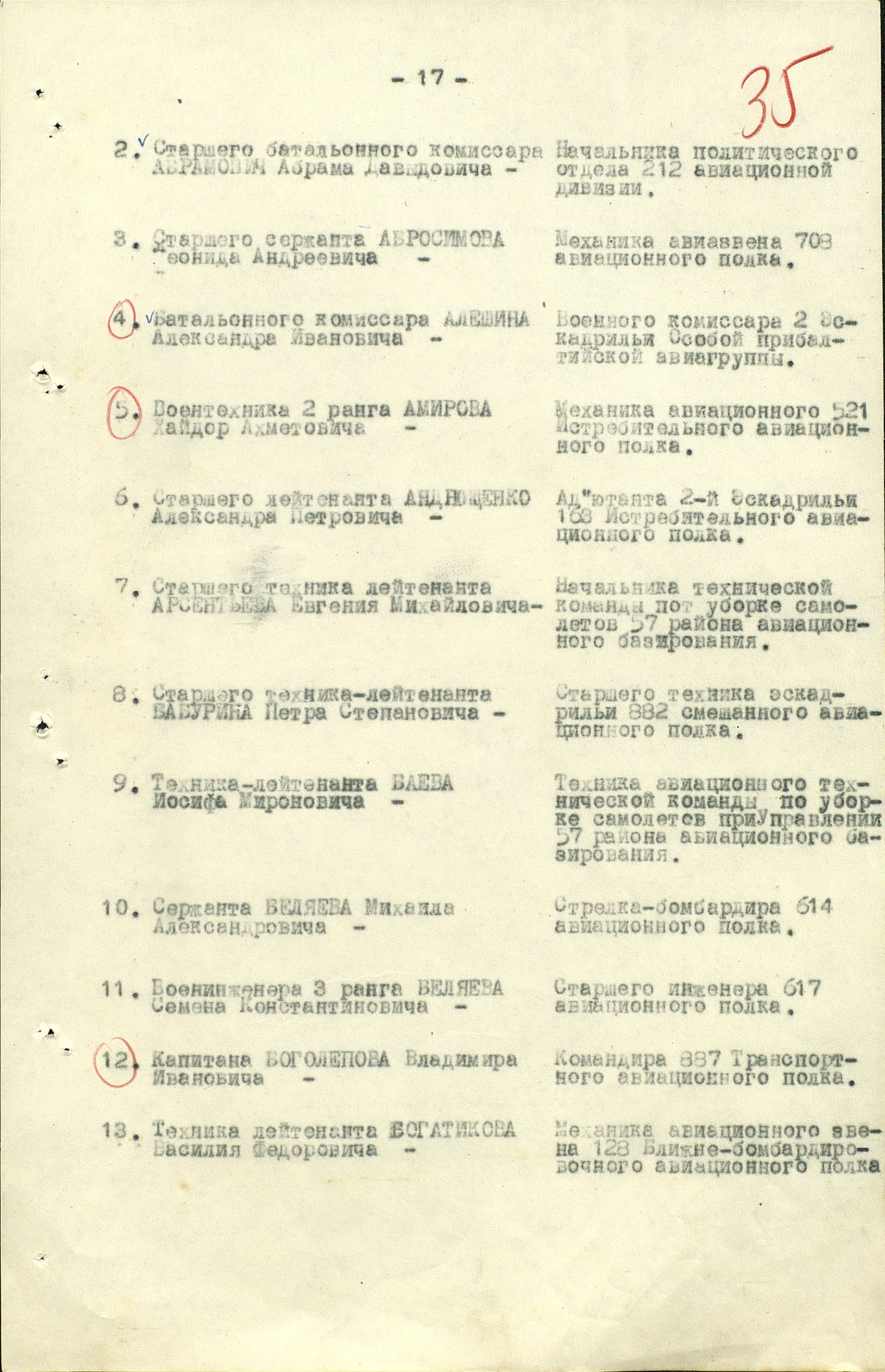 5. Перечень No.12 авиационных полков военно-воздушных сил Красной Армии, входивших в состав Действующей армии в годы Великой Отечественной войны 1941-1945 гг.