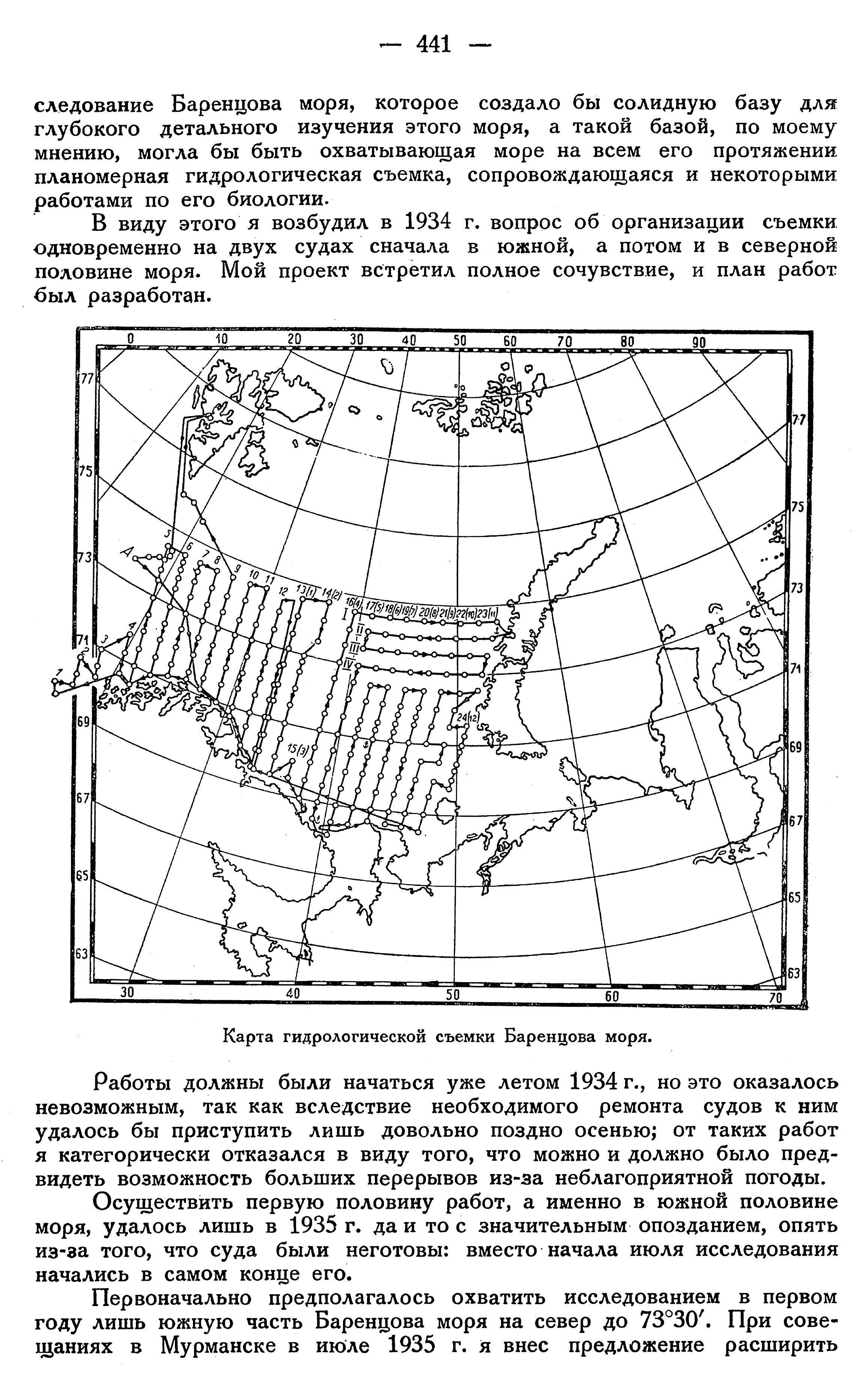 В 1936 г. предполагается произвести гидрологическую съемку северной части Баренцова моря, начиная с 73°30'.