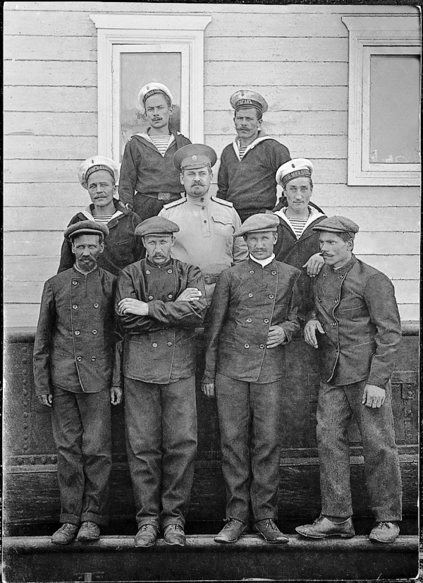 Члены экспедиции Г. Я. Седова %28слева направо%29 Н. Сахаров%2C В. Лебедев%2C Г. Линник%2C П. Кушаков%2C И. Пищухин%2C М. Шестаков%2C И. Кизино%2C Н. Пинегин%2C А. Инютин%2C М. Павлов. Лето 1914 г..jpg