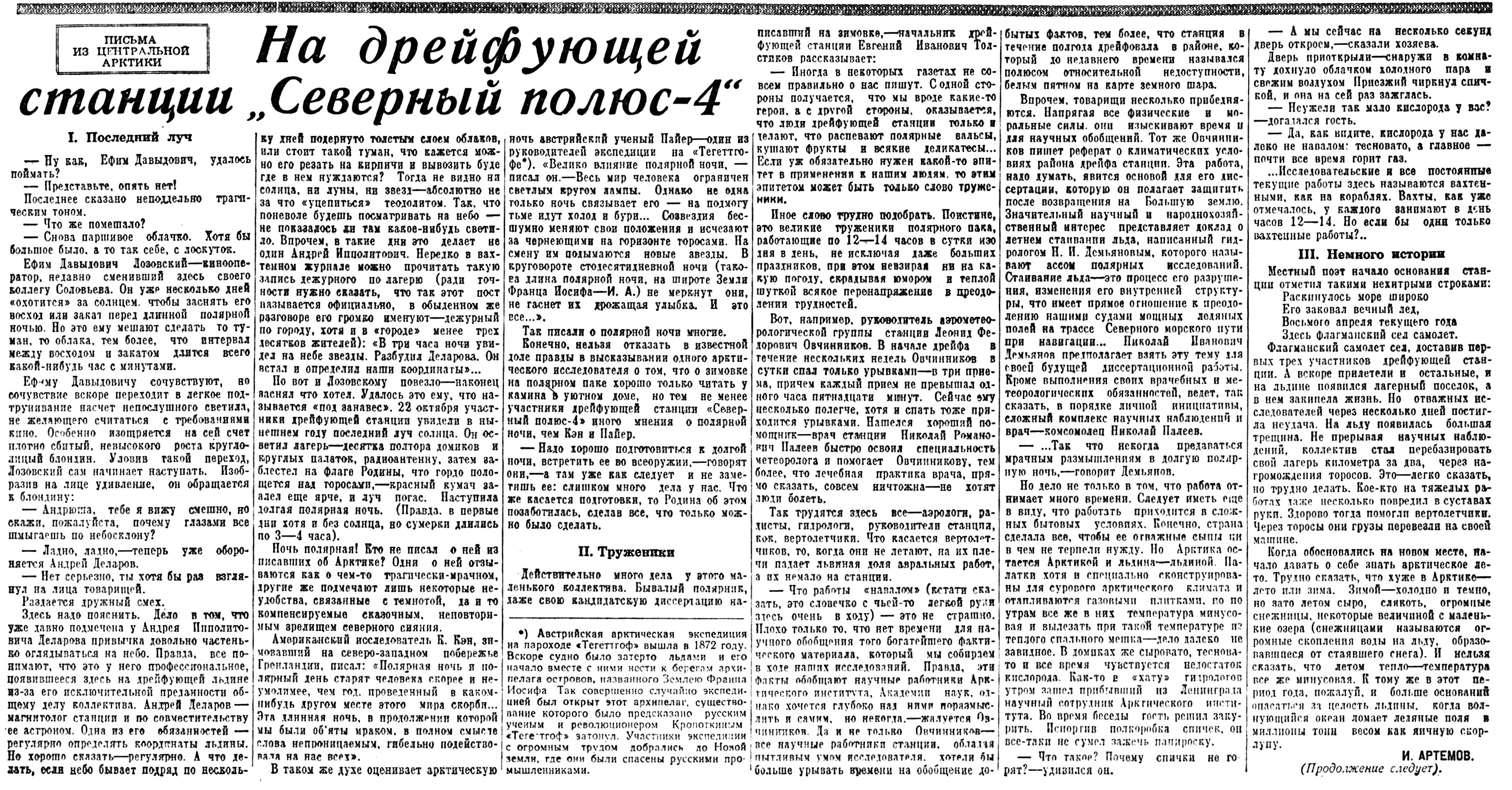 Конечно, нельзя отказать в известной доле правды в высказывании одного арктического исследователя о том, что о зимовке на полярном паке хорошо только читать у камина в уютном доме, но тем не менее участники дрейфующей станции «Северный полюс-4» иного мнения о полярной ночи, чем