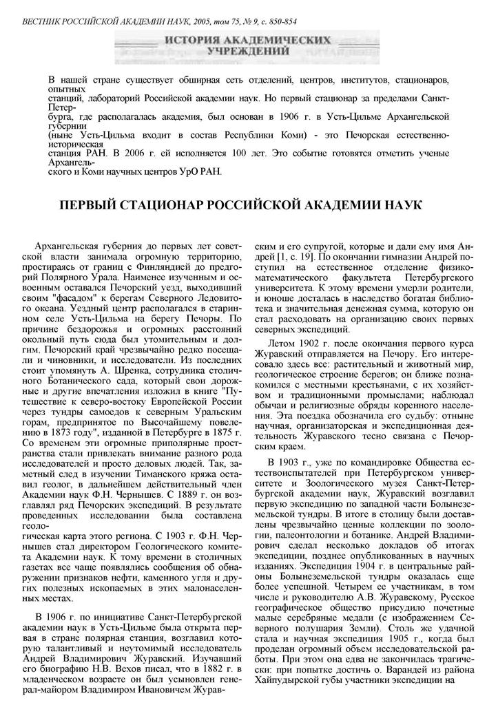 Основатель первой на Северо-Востоке европейской части России сельскохозяйственной опытной станции Андрей Владимирович Журавский родился 22 сентября 1882 г. В 1901 г. после окончания гимназии он поступает в Петербургский университет на естественное отделение физико-математического факультета. В летние каникулы 1902 г. увлеченный рассказами профессора Ф.Н. Чернышева о Севере, Журавский совершает первую поездку в Архангельск, а оттуда пароходом поднимается по р. Печора до старинного уездного села Усть-Цильма. В первую же поездку он был поражен красотой Севера, его природой, людьми, их бытом и культурой.