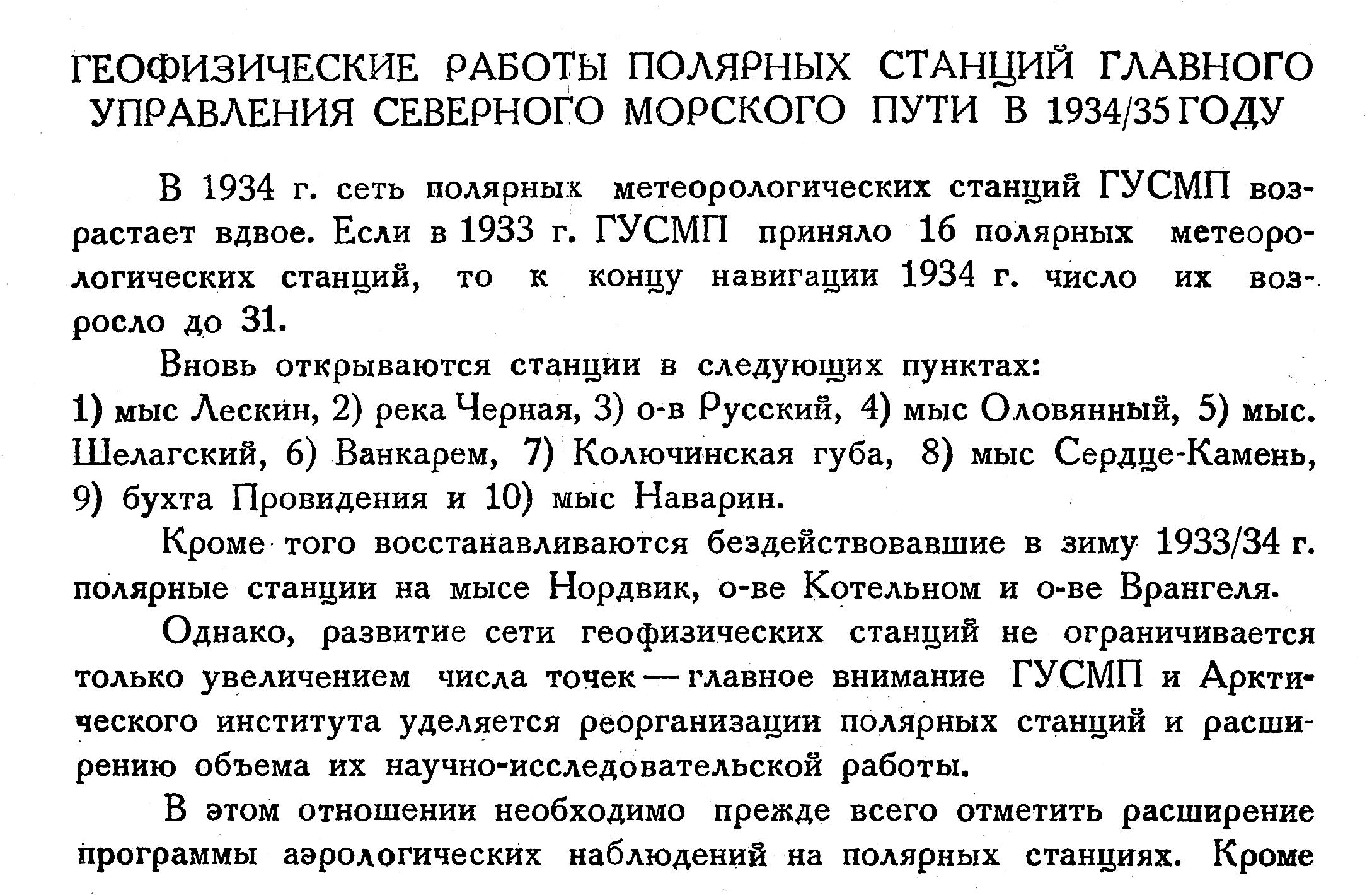 ГЕОФИЗИЧЕСКИЕ РАБОТЫ ПОЛЯРНЫХ СТАНЦИЙ ГЛАВНОГО УПРАВЛЕНИЯ СЕВЕРНОГО МОРСКОГО ПУТИ В 1934/35 ГОДУ