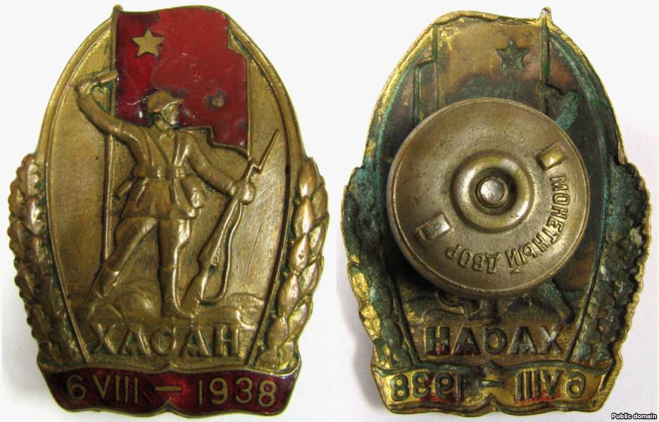 На фото: нагрудный знак "За участие в боях на оз. Хасан"
