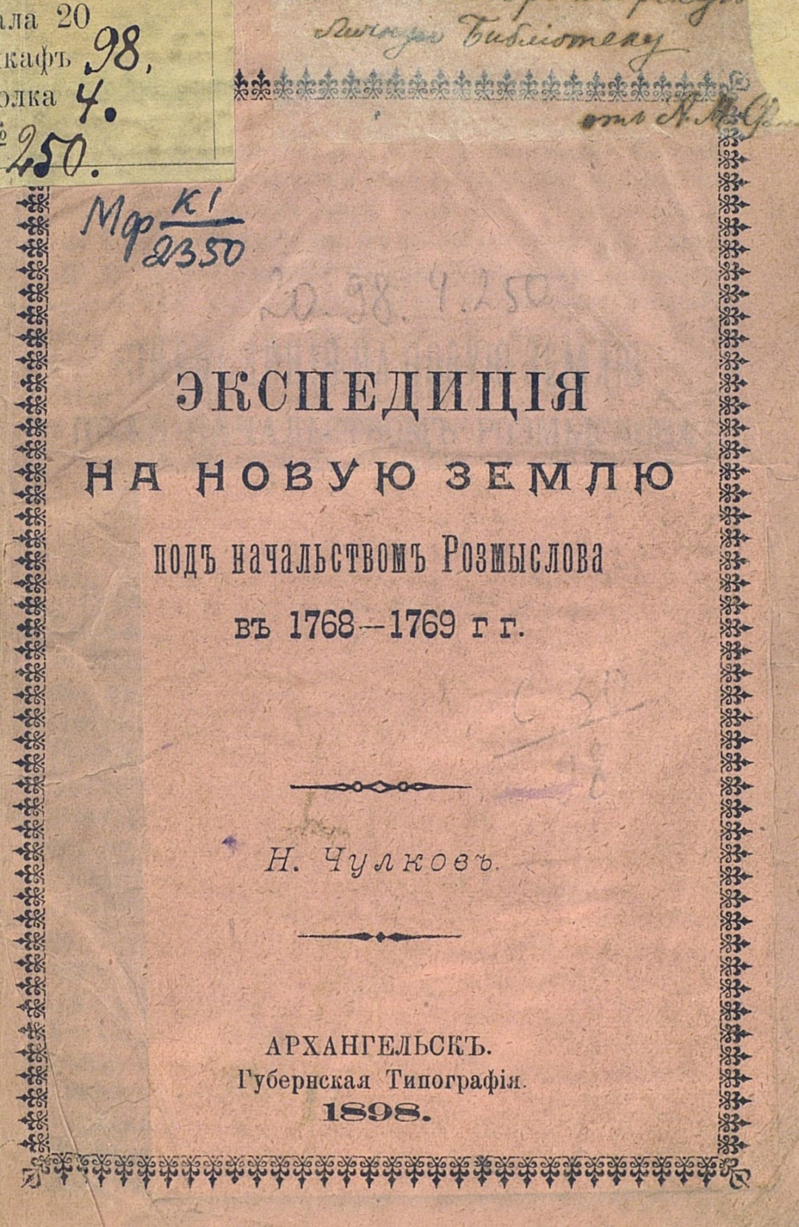Чулков Н., Экспедиция на Новую Землю под начальством Розмыслова в 1768-1769 гг. — Архангельск ,1898 .