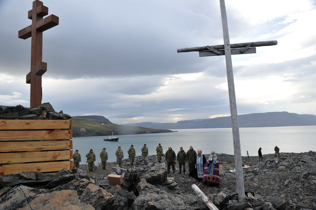 – С Божьей помощью мы достигли этих замечательных мест. Это действительно «новая» земля, где нет места греху, суете, всему приходящему. Здесь всё дышит близостью к Богу. И замысел, который родился ровно год назад, в сентябре 2017 года, с Божьей помощью и по благословлению Патриарха Московского и всея Руси Кирилла воплотился – мы поставили святой крест. Мы совершили отпевание погибших здесь героев Арктики, ведь в экспедиции Фёдора Розмыслова не было священнослужителя. Также мы освятили храм в воинской части посёлка Северный, – сказал епископ Нарьян-Марский и Мезенский Иаков. – История русской Арктики продолжается, защита этих рубежей – наш долг. Сегодня здесь мы все, вместе с солдатами, офицерами, юнармейцами, ощутили единство, над которым время не властно.