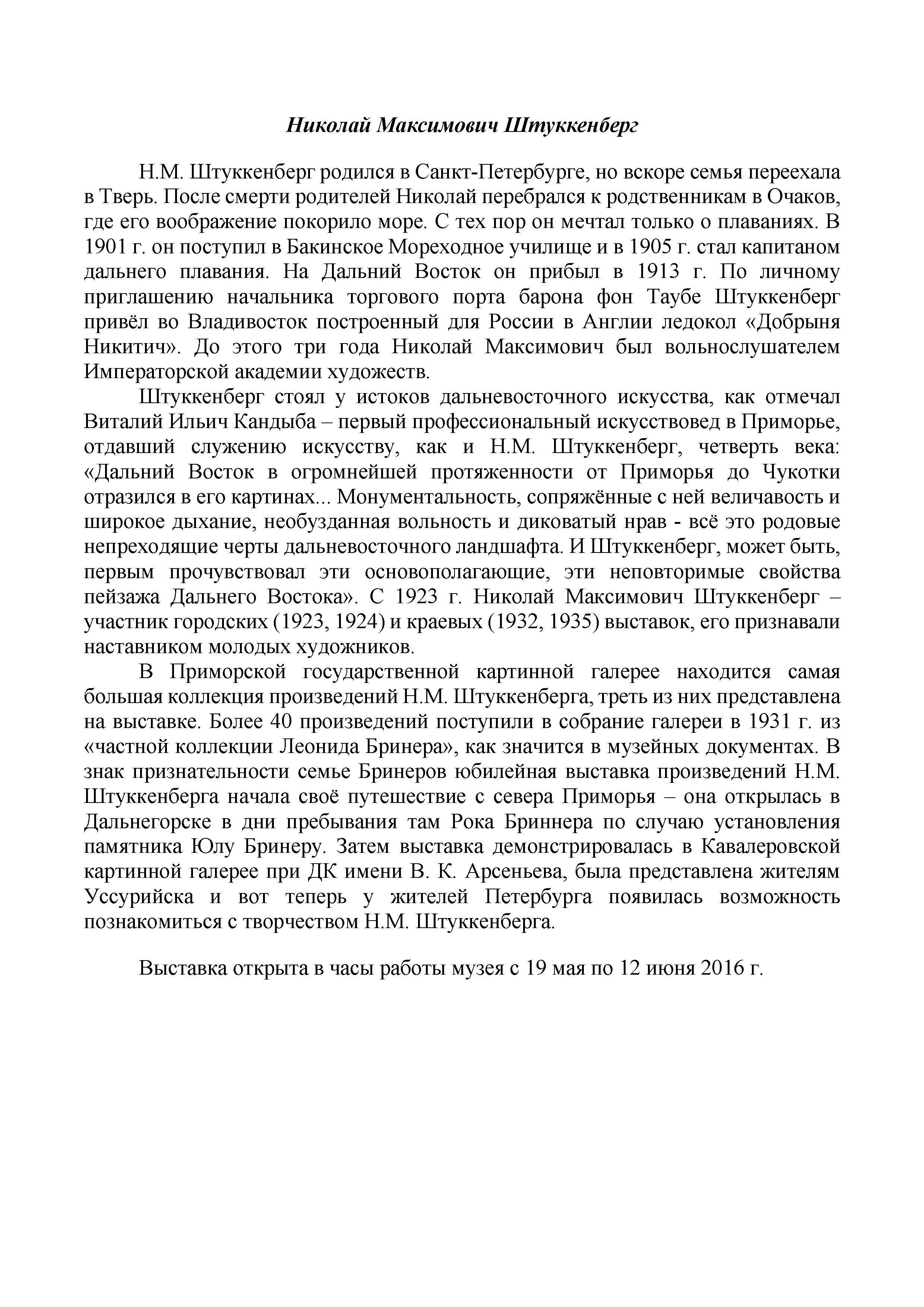 Выставки и газетные статьи говорят о большой общественной и творческой значимости Н.М. Штуккенберга для развития русского Дальнего Востока.