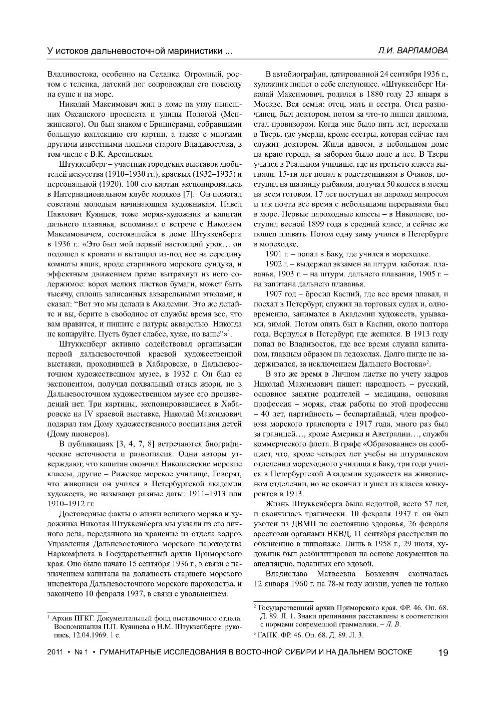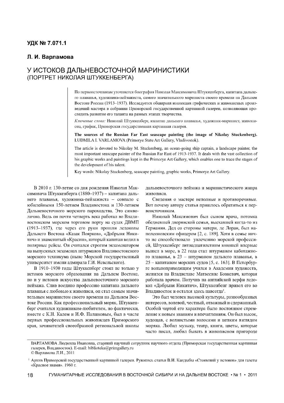 ВАРЛАМОВА Людмила Ивановна, старший научный сотрудник научного отдела (Приморская государственная картинная галерея, Владивосток). Е-mail: biblioteka@primgallery.ru © Варламова Л.И., 2011