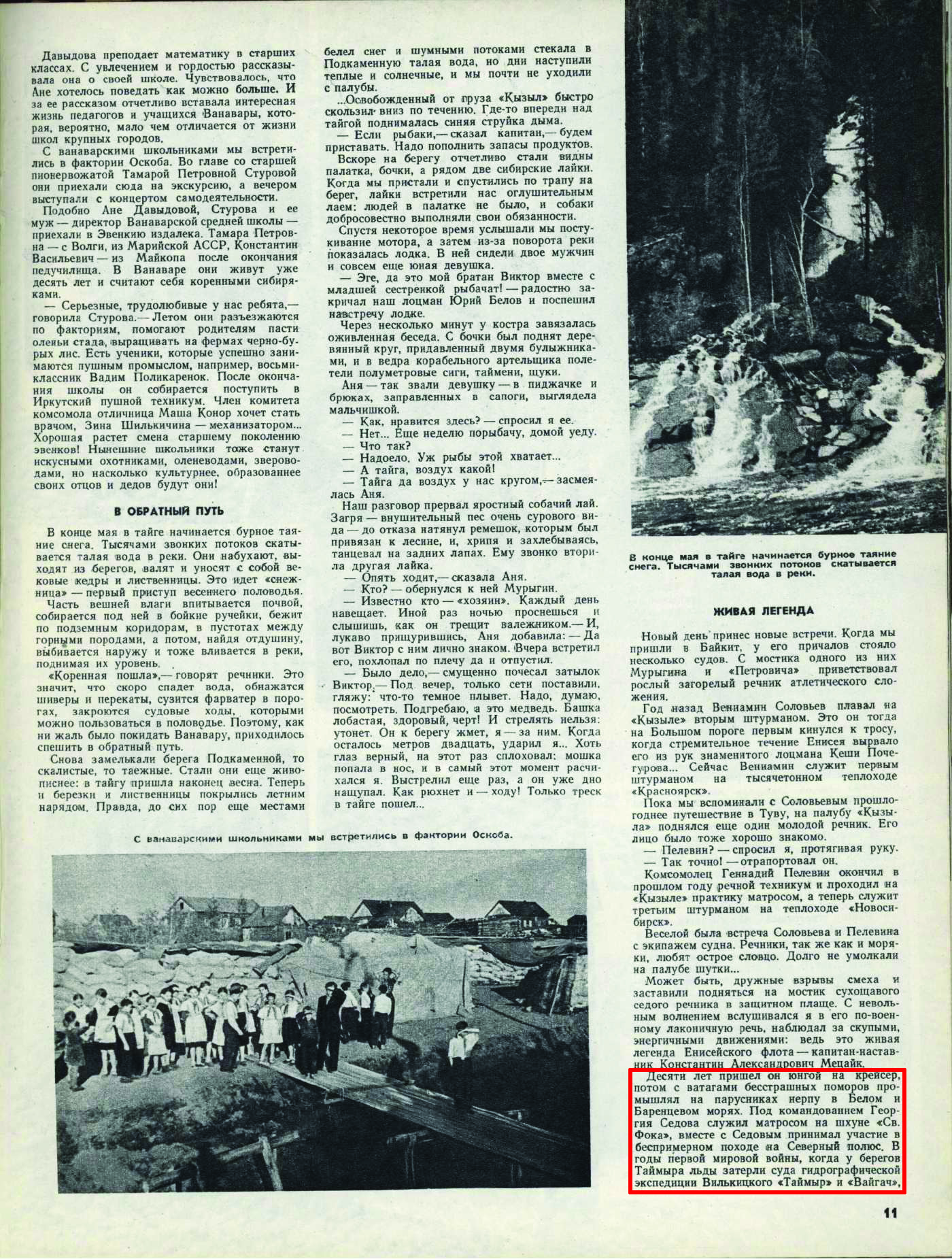 Может быть, дружные взрывы смеха и заставили подняться на мостик сухощавого седого речника в защитном плаще. С невольным волнением вслушивался я в его по - военному лаконичную речь, наблюдал за скупыми, энергичными движениями: ведь это живая легенда Енисейского флота - капитан - наставник Константин Александрович Мецайк.