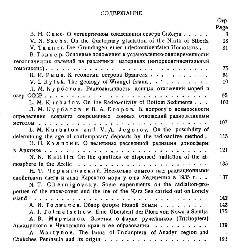 N. Urvantsev. То the Problem of Salt-Mining in the Eastern Section of the USSR Polar Regions (Summary) ... 51