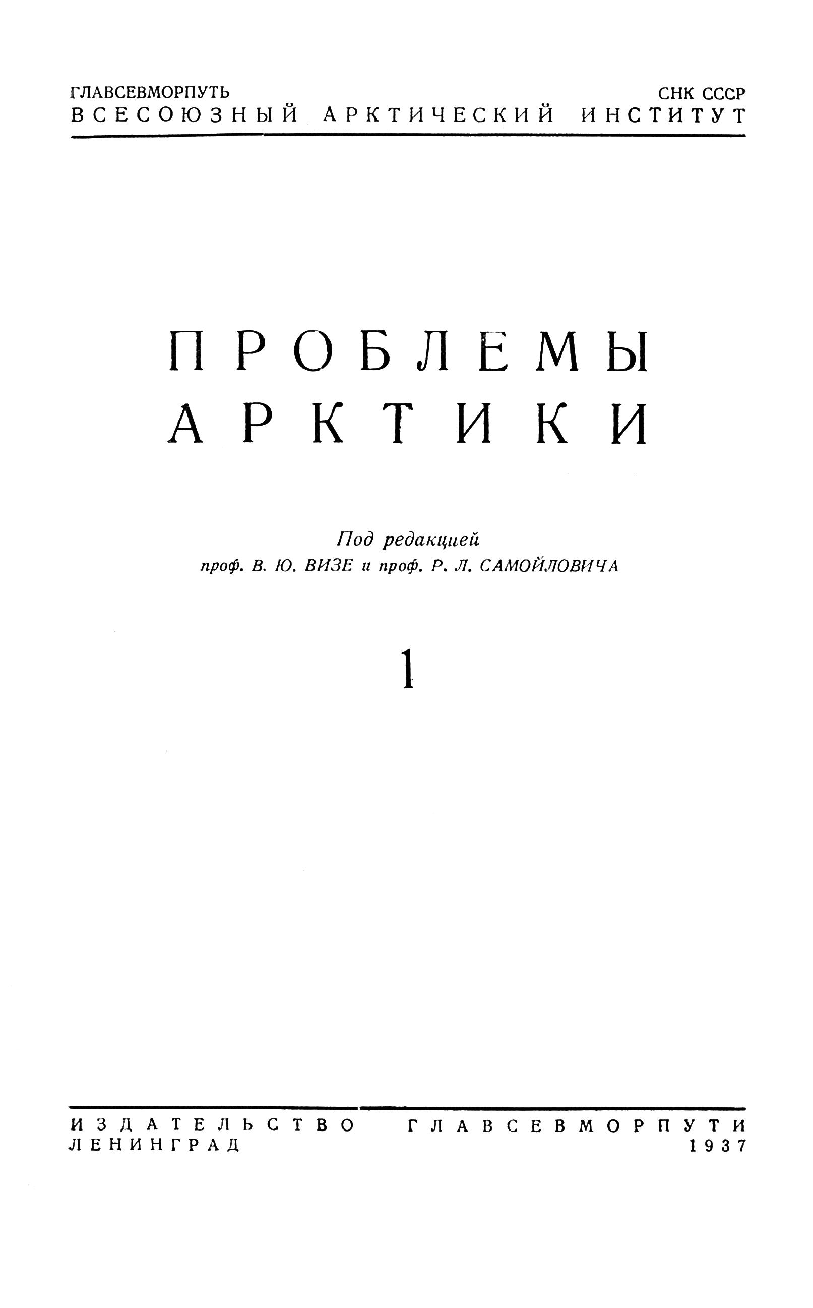 ПРОБЛЕМЫ АРКТИКИ №1. Изд-во Главсевморпути. Ленинград 1937