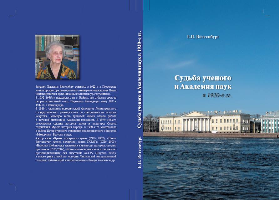 Виттенбург, Евгения Павловна (1922- ). Судьба ученого и Академия наук в 1920-е гг. [Текст] / Е. П. Виттенбург. - Санкт-Петербург : Нестор-История, 2014. - 99, [1] с., [1] л. портр. ; 6,25 усл. печ. л. - Библиогр.: с. 94 и в подстроч. примеч. - Список трудов: с. 95. - Имен. указ.: с. 96-98. - 500 экз. - ISBN 978-5-4469-0356-6 (в пер.)