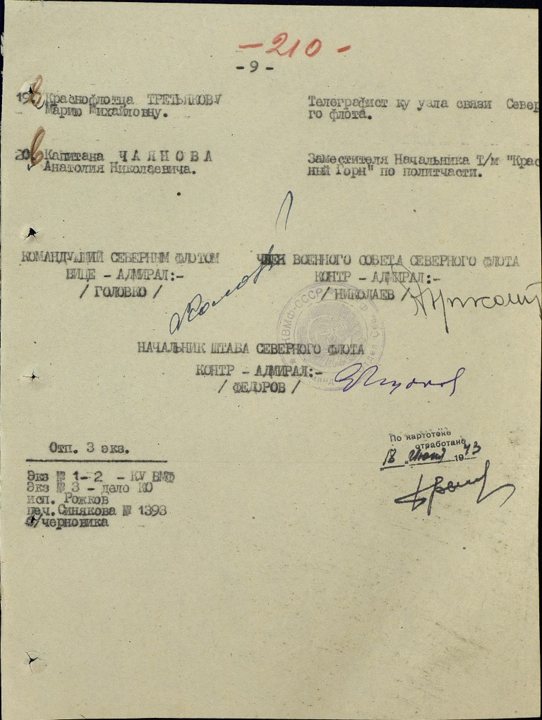 Тут я как-то сразу всю свою жизнь вспомнил... Детдом в Кронштадте, школу и работу там же, в городе-крепости, призыв в 1932 году, службу в Балтфлоте, поход на Север на том же корабле, на котором и сейчас служу 5 лет беспрерывно. Вспомнилось, что сам великий Сталин встречал первый отряд боевых кораблей будущего Северного флота на пороге Белого моря. Сам вождь и учители товарищ Сталин лично наметил место постройки военно-морской базы. И чтобы я отдал фашистам наши советские радиограммы, позволил бы кровавым псам агрессии помешать огромной, мировой важности научной работе папанинцев — ни за что!