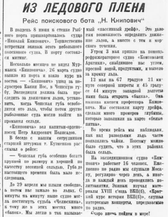 Полярная Правда, 1928, №111, 29 сентября 1-й рейс КНИПОВИЧА.jpg