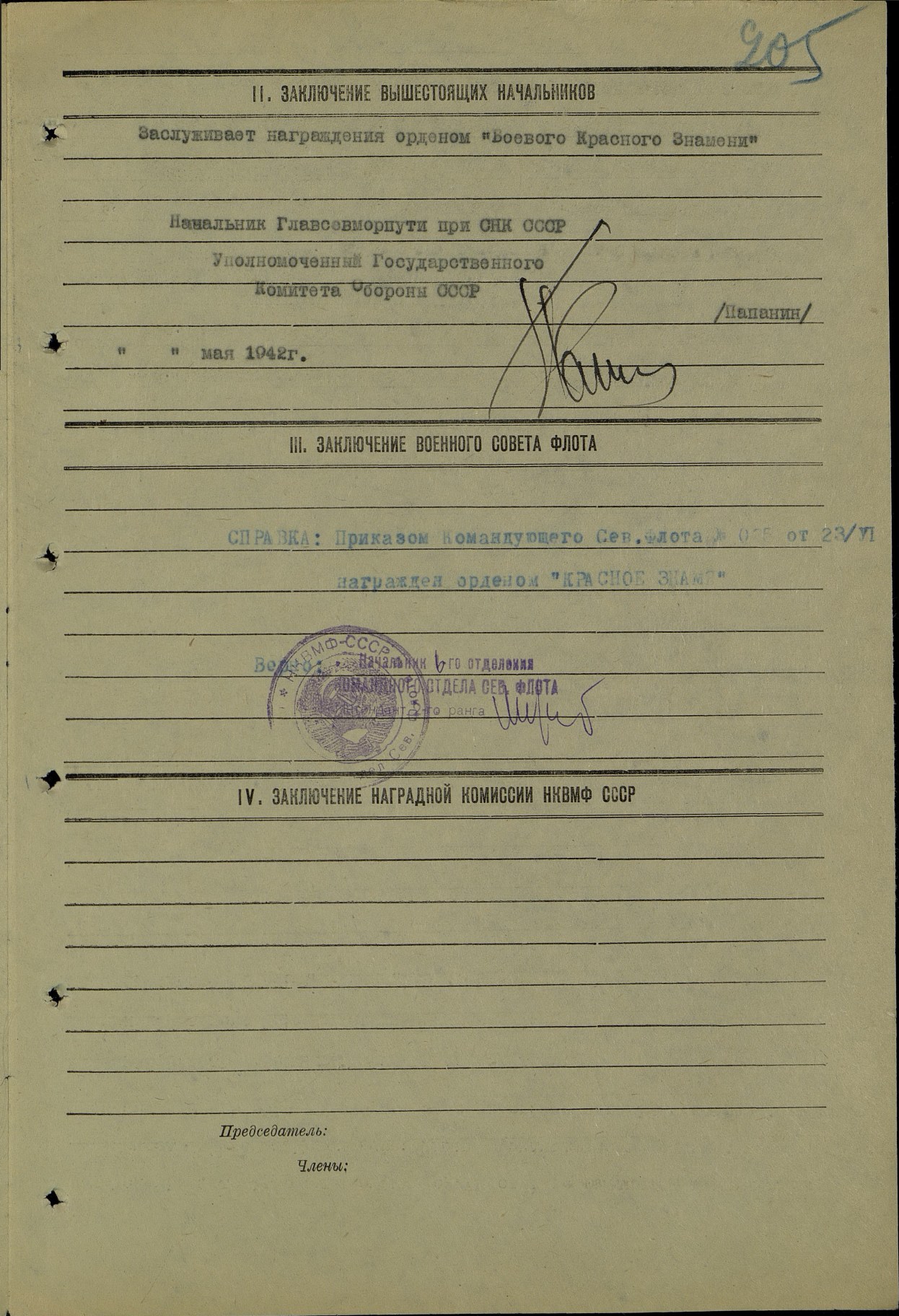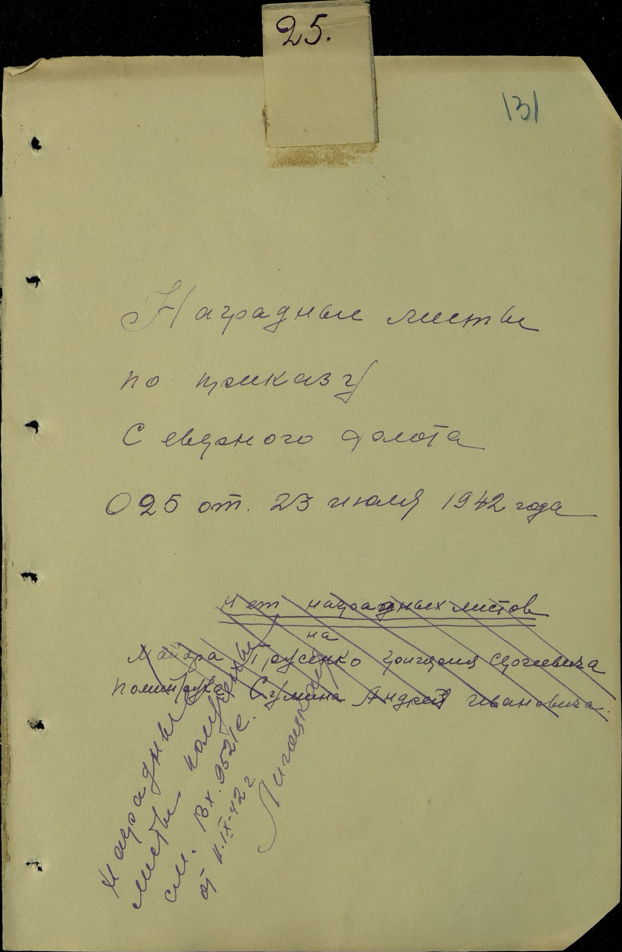 Представление на награждение №: 25 от: 23.07.1942 СФ