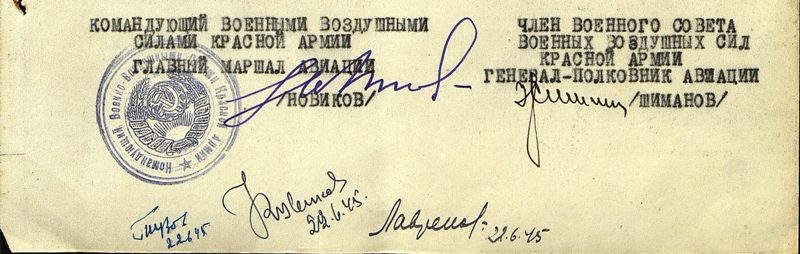 Фронтовой приказ № 56/н от: 23.06.1945 ВВС КА