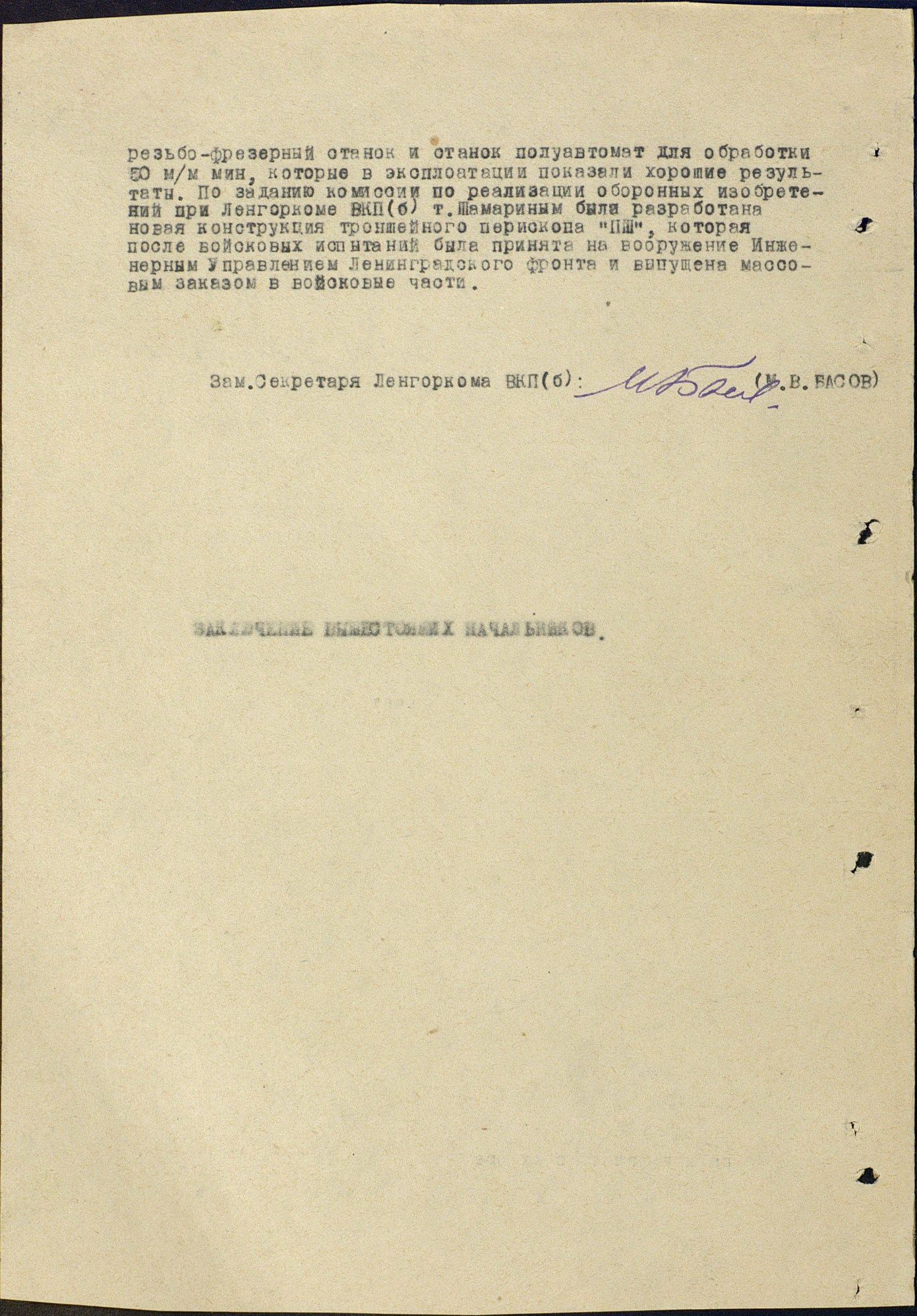 Великая Отечественная война прервала работу над прибором, которому было отдано десять трудовых лет. С первых дней войны коллектив экспериментально-производственных мастерских института стал выполнять заказы Ленинградского фронта, Краснознаменного Балтийского флота. В тяжелейших условиях ленинградской блокады А. Н. Шамарин разработал станок-полуавтомат для обработки корпусов мин, траншейный перископ – простой и удобный солдатский прибор, спасший тысячи бойцов от снайперских пуль противника, и многое другое.