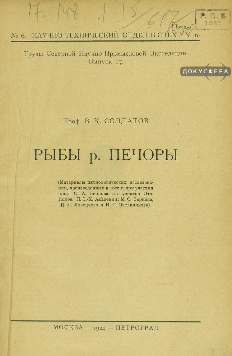 Солдатов В.К. Рыбы р. Печоры.pdf [135.57 МБ Скачиваний: 625]