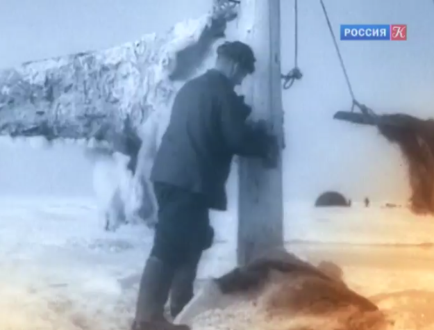 ТВ "Культура", фильм "Михаил Сомов: человек и корабль". Кадры кинохроники с дрейфующей станции "Северный полюс-2...