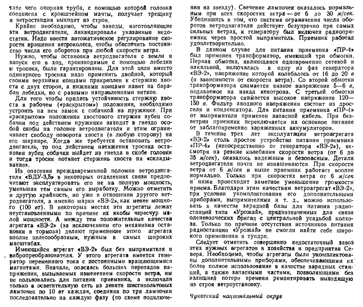 Работа ветродвигателей в условиях Севера // Радио, 1956, № 4, с.21-22