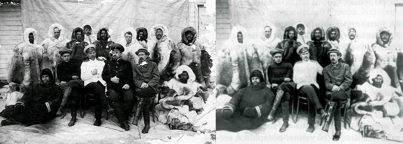 На одном из многочисленных фото, отображающих поход экспедиции Седова к Северному полюсу, в широком наборе представленных в Интернете, снят Г.Я. Седов с членами экспедиции, – под фотографией подпись: «Г.Я. Седов с членами экспедиции. 1912 год». На ней среди участников экспедиции есть и Павел Григорьевич Кушаков – он сидит рядом с Седовым, третьим слева. Но есть и другая фотография, которая один-в-один повторяет первую, за исключением одного: на ней отсутствует Павел Кушаков, потому что его изображение вымарано. Отсутствует также изображение и стоящего за ним матроса, только кому и зачем понадобилось вымарывать их изображения? Таким вопросом задаются некоторые участники интернет-форумов, посвящённых тематике экспедиции, – этот вопрос возник и у меня. Поиски ответа на него привели к следующему.