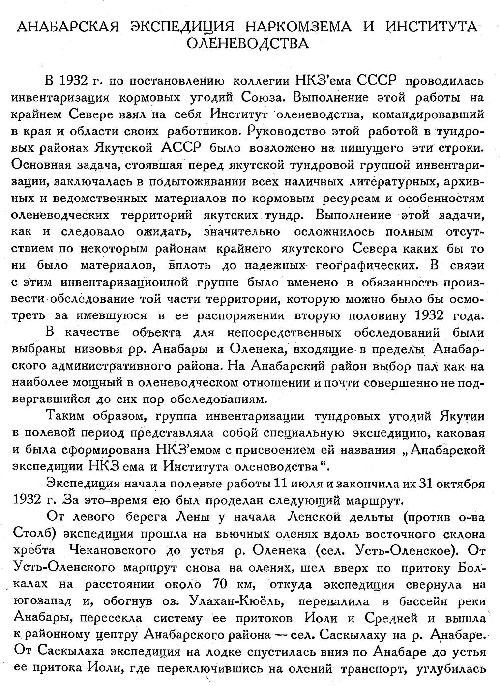 АНАБАРСКАЯ ЭКСПЕДИЦИЯ НАРКОМЗЕМА И ИНСТИТУТА ОЛЕНЕВОДСТВА