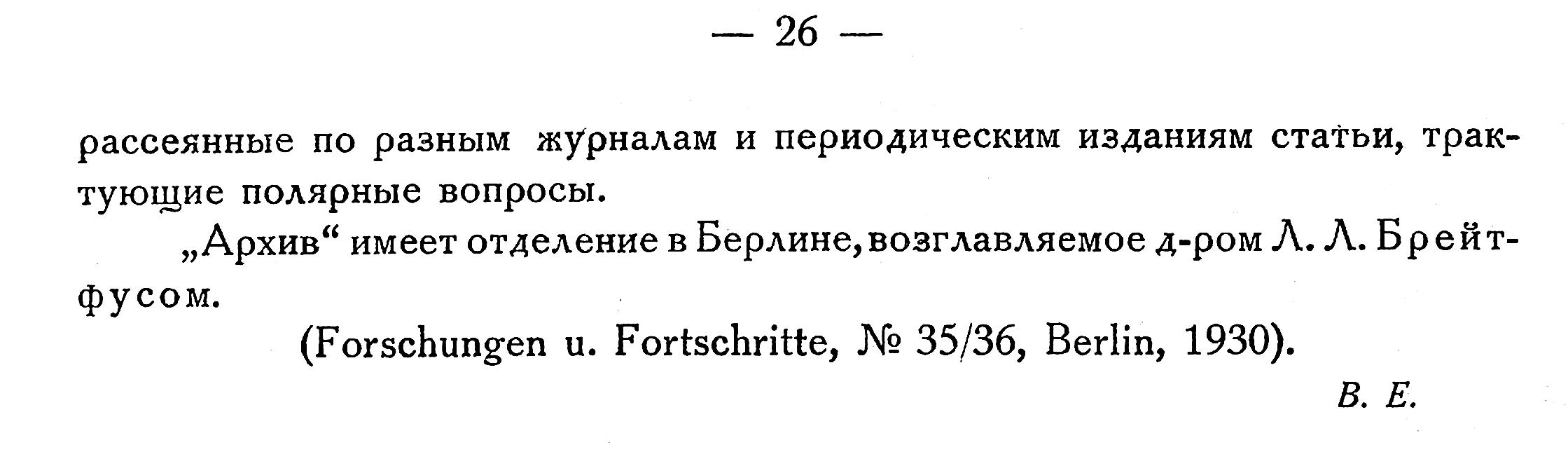 „Архив" имеет отделение в Берлине,возглавляемое д-ром Л. Л. Брейтфусом.