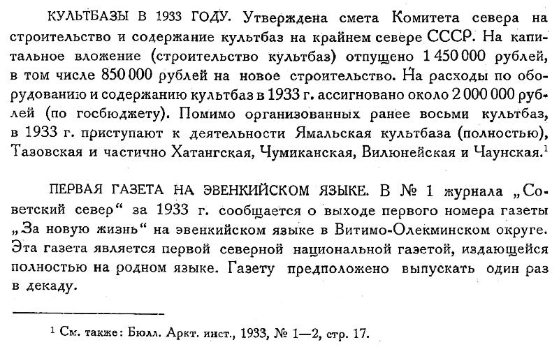Культурным базам Комитета Севера принадлежит почетное место в истории национального строительства на Крайнем Севере, и деятель­ность их заслуженно привлекала внимание многих иностранных уче­ных и общественных деятелей.