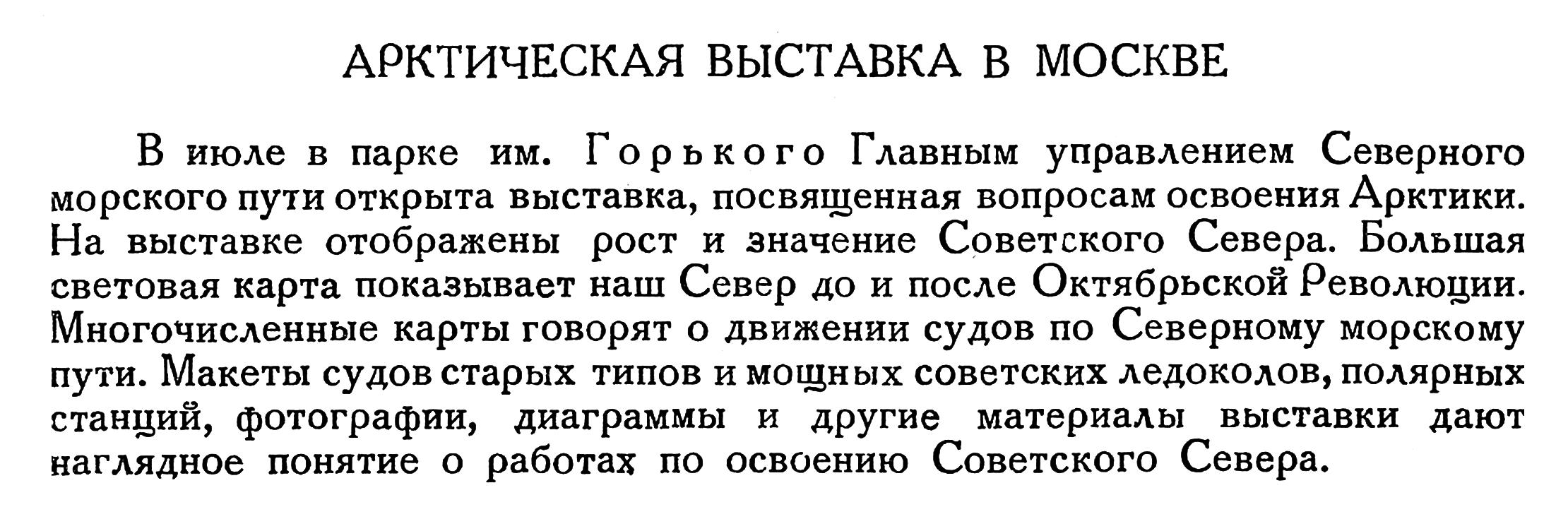 Та большая задача, которая стоит перед Главным управлением Северного морского пути при Совнаркоме СССР, — освоение Северного морского пути, связанное, разумеется, с хозяйственным и экономическим освоением всего района СССР, лежащего севернее 62 параллели, — требует, естественно, серьезной и широкой постановки научных работ в Советской Арктике. Именно из этих соображений в настоящем году будут использованы все органы Главсевморпути для правильной постановки научно-исследовательской деятельности. Не только Всесоюзный Арктический институт, как центральный научно-исследовательский орган Главсевморпути, но также и Полярное управление, Управление воздушной службы, Гидрографическое управление, территориальные управления ставят себе задачей развитие своей деятельности в Советской Арктике на основании точных научных данных.